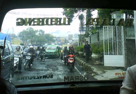 Pada musim hujan, Bandung menjadi kota yang menyiksa coz sama sekali nggak enak buat dipakai jalan-jalan. Hampir tiap ruas jalannya mengingatkan gw kepada muka orang yang habis kena cacar alias bolong-bolong. Bolongnya nggak kira-kira, diameter segede-gede gaban dan cukup dalem sampai bikin setiap pengendara mobil manapun jadi nggak waras. Beberapa minggu lalu sebuah skuter terperosok di tengah jalan gara-gara dos-q nekat mengangkangi sebuah lobang di situ. Lha, hujannya deras banget akhir-akhir ini, situasi banjir, mana tahu kalau di tengah jalan situ ada lobang. Apakah lantas kita mesti kesiyan sama para pengendara motor di Bandung? Hah, gw bilang, jangankan sama yang naik motor, kepada yang naik mobil aja gw merasa ikut berduka cita. Gw bilang, enaknya kita-kita yang tinggal di Bandung ini ganti aja semua mobil dengan kendaraan tinggi biar nggak gampang terperosok. Kalau gw lebay, gw pasti udah bilang bahwa ruas jalan-jalan di Bandung ngingetin gw kepada Jalan Trans Kalimantan yang melintasi Kalimantan Timur jalur utara. Rusak.