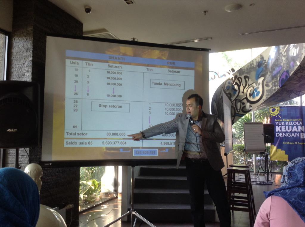 Survey ini membuka talk show edukasi keuangan Jumpa Blogger Sun Life bertajuk “Yuk Kelola Keuangan dengan Bijak” yang dihelat oleh Sun Life Financial Indonesia di restoran Rocca, Surabaya, kemarin. Dalam talk show yang melibatkan blogger se-Jawa Timur ini, konsultan keuangan Alviko Ibnugroho memaparkan pedoman mudah untuk menjadi kaya. Dimulai dengan menjabarkan delapan “error” sifat manusia dalam mengelola keuangan, dan menjelaskan solusinya supaya manusia tidak sampai terperangkap dalam kesalahan-kesalahan tersebut.