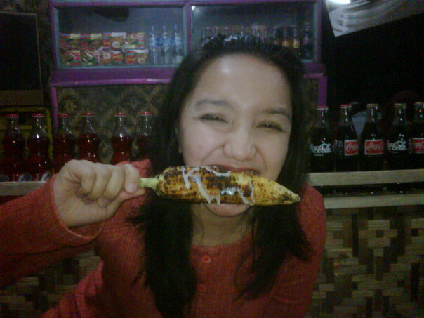 Di Lembang bejibun banget dijual sate kelinci, tapi saya pilih spot yang ada di tempat yang saya julukin Emen’s Place. Di titik sini berjejer warung-warung yang jualan sate kelinci plus jagung bakar, dan minuman yang paling banyak dipesen adalah bandrek. Kenapa dinamain Emen’s Place? Gini lho, titik ini kan letaknya di jalan raya yang menghubungkan Bandung dan Subang, dan kiri-kanannya adalah jurang berisi kebun teh. Di beberapa tikungan kadang-kadang lampu jalannya irit banget, jadi kendaraan mesti hati-hati kalau jalan di sini. Maka kadang-kadang suka ada kecelakaan yang biasanya melibatkan truk, di mana mungkin supir truknya ngantuk. Meskipun supirnya nggak pernah ngaku kalau mereka ngantuk, sebaliknya saban kali kecelakaan, mereka selalu mengaku lihat seseorang lagi jalan di tengah jalan raya, sehingga mereka kehilangan kendali. Konon, “orang” itu bernama Emen. Sudah ah cerita hantunya. Intinya saya dan sepupu markir mobil di situ dan saya jalan keliling deretan warung itu nawar-nawar harga. Sate kelinci dibanderol Rp 15.000,- per 10 tusuk dan nggak mau ditawar, bleh. Rata-rata jualan jagung bakar per bonggolnya goceng, tapi saya menawar-nawar dengan kejam sampek akhirnya berhasil dapetin lebih murah 30%. Ini pasti gara-gara sepupu saya nyetir mobil bagus dan ngeliat tampang kami cantik-cantik, jadinya mereka pasang harga mahal-mahal. Halaah..cuman makan jagung bakar aja.