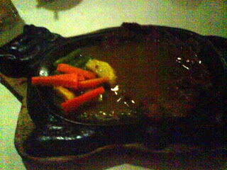 anak saya paling senang makan steak jenis ini Mba, soale waja yang panas itu mengasyikkan kata anak saya. steaj di iris-iris lalu di aduk, kayak masak di rumah deh katanya…he..he..
