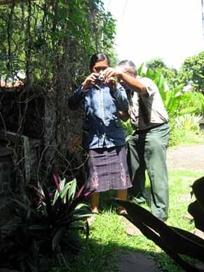 “Owalah..saya baru liat tho, Mbak.. HP saya ya bisa buat motret, tapi nggak segede gini,” kata Syahrince kebingungan. “Duuh..piye iki??”